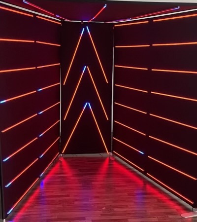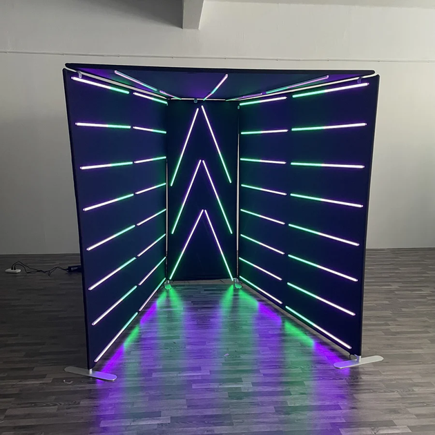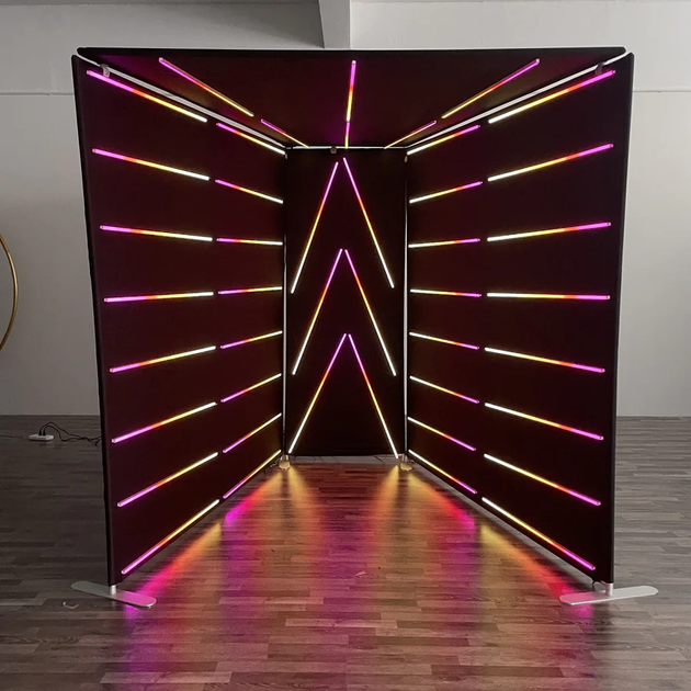 A beautiful enclosure that can pair well with any of our photobooth activations. Use the power of bright RGB lights to complement the visual aesthetics of your event. Colors will be matched against your event. Lights dance to your music.
