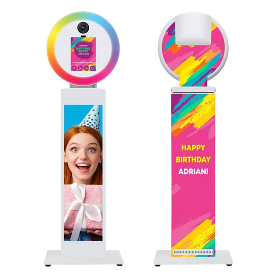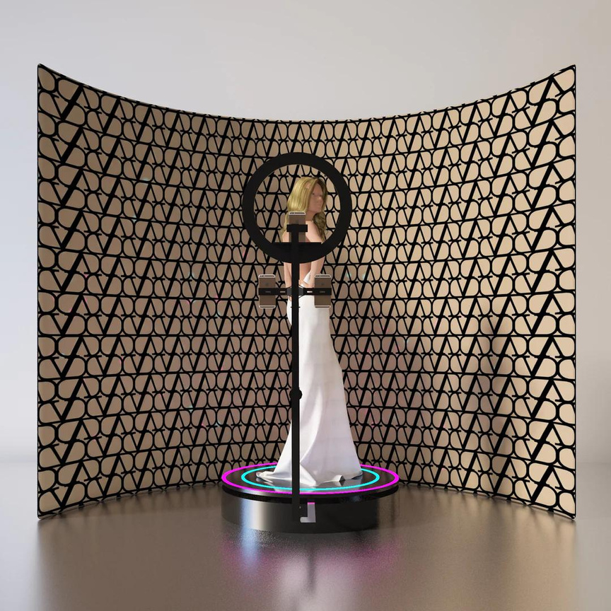 Receive the highest quality images with a professional DSLR camera, bright RGB ringlight and a vertical TV screen that will advertise your brand messaging.