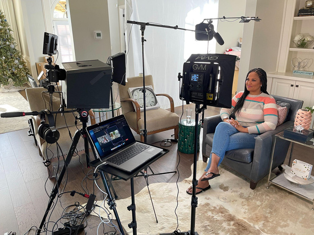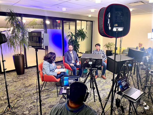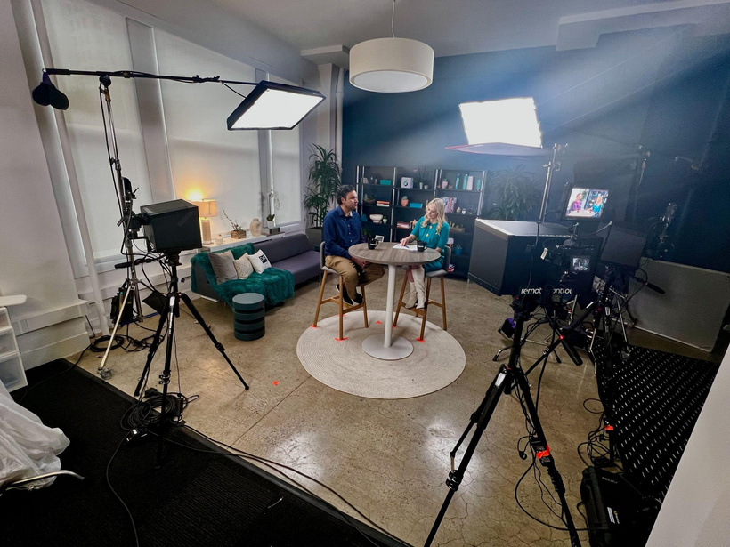 Designed for shooting 2-person fireside chats and up to 4 person panel discussions