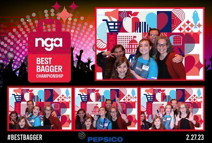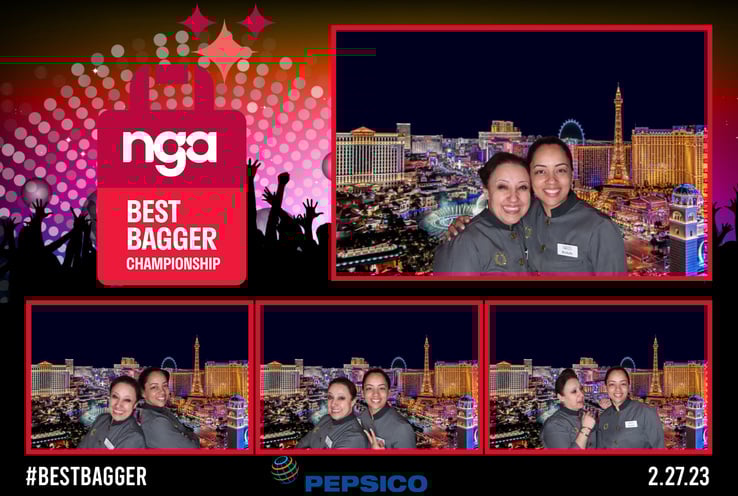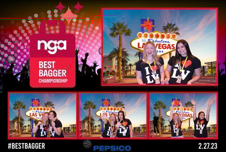 We curated a branded photo op for guests at the NGA Best Bagger Championship, sponsored by PepsiCo using our Selfie Station+. The digital screen was branded with company/event logos and the RGB light was matched with brand colors. Printouts were done instantly, with virtual background removals.