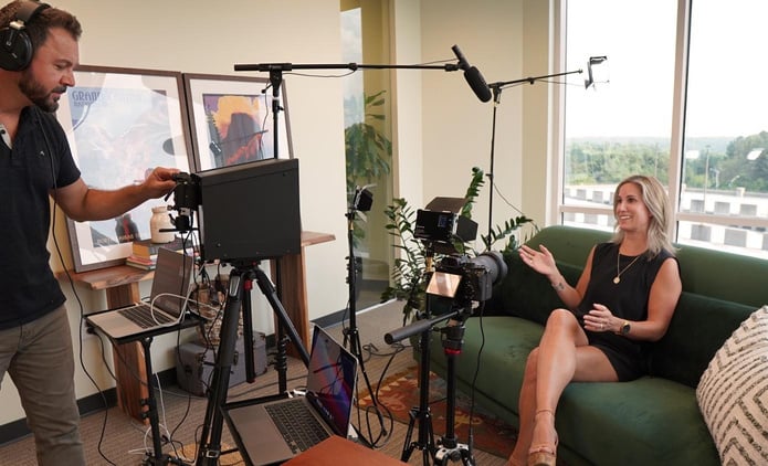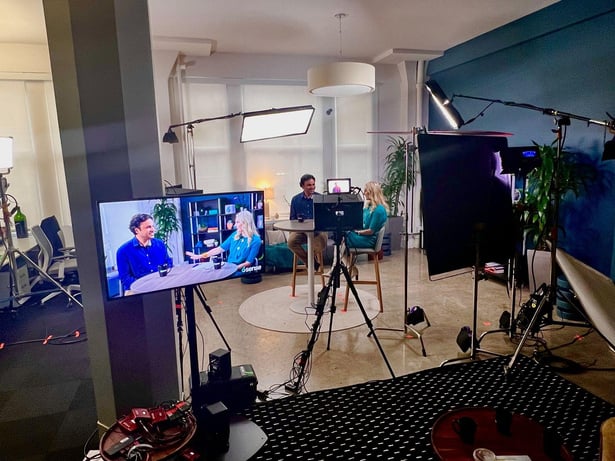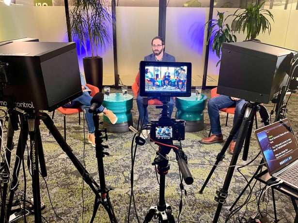Designed for shooting 2-person fireside chats and up to 4 person panel discussions