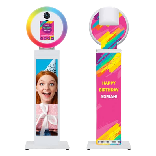 Receive the highest quality images with a professional DSLR camera, bright RGB ringlight and a vertical TV screen that will advertise your brand messaging.